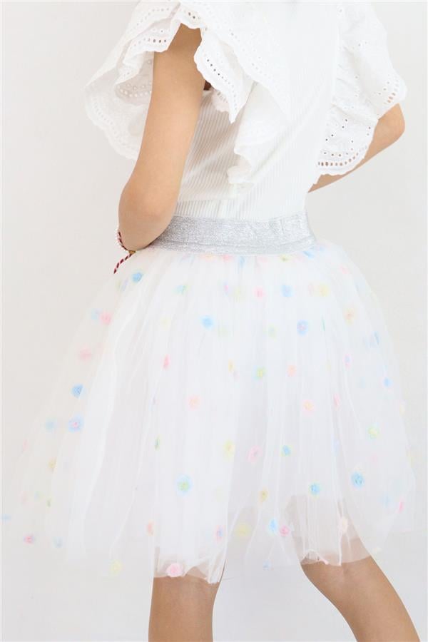 Made in Turkey - Girls' Tutu Skirt with Colorful Flower Embroidery, White (Ages 4-10)