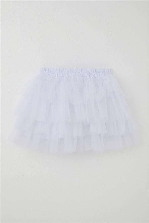 Made in Turkey - Girls' Tutu Skirt with Tulle Detail and Layered Bow Accessory, White (Ages 4-8)
